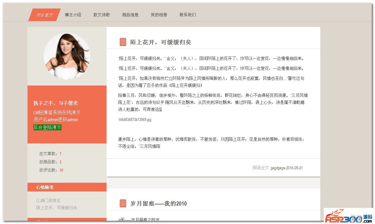 侯爷轻博客系统采用php+Mysql开发,标签系统采用国际成熟的smarty的标签引擎,系统简单,旨在向大家提供开源的学习教程,本程序可自由发布,不限于商业用途,但在保留版权,以对作者的尊重,本程序虽然小但包括大部分应用技术,如图片上传裁切,百度Uedit编辑器的使用,Smarty的自定义块和自定义函数的使用等等,如您对php有一个基本的了解,本程序将助你有一个更进一步的提高。