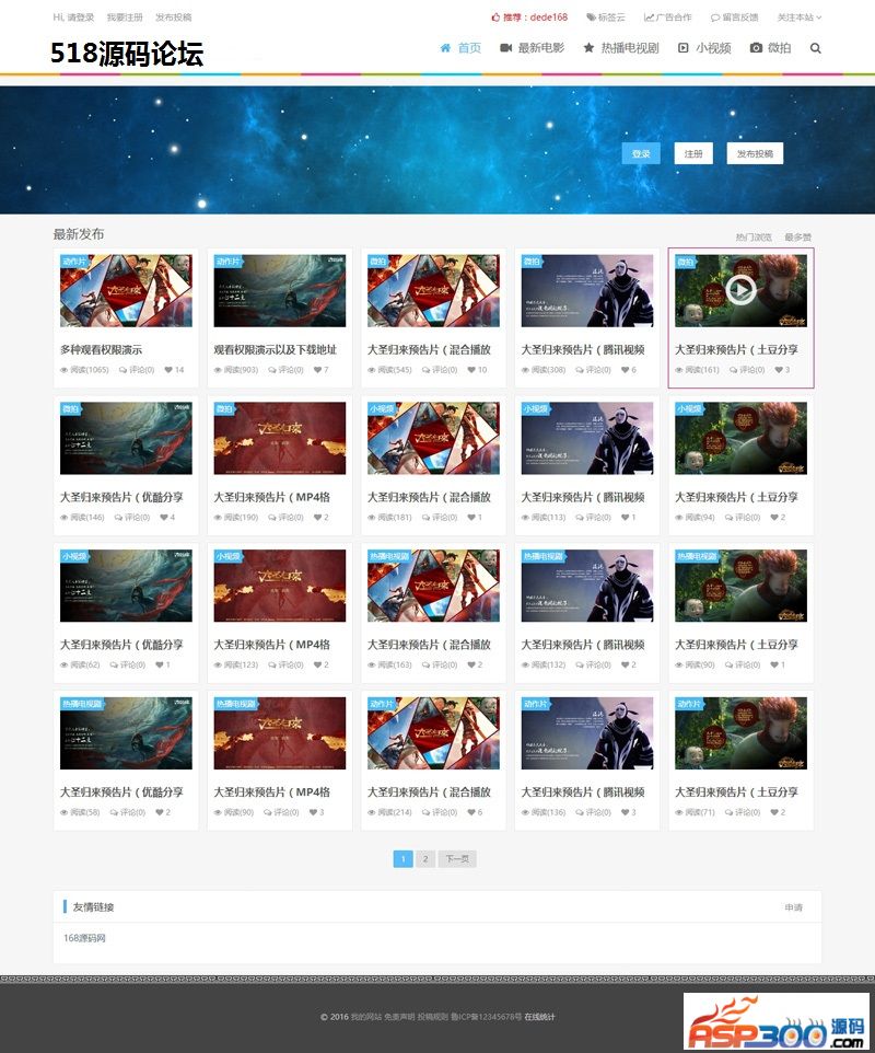 在线视频电影网站源码带手机Html5响应式视频网站源码