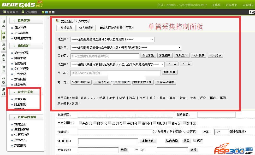 8.增加前台论坛、门户、群组,发帖的时候,有采集控制面板。