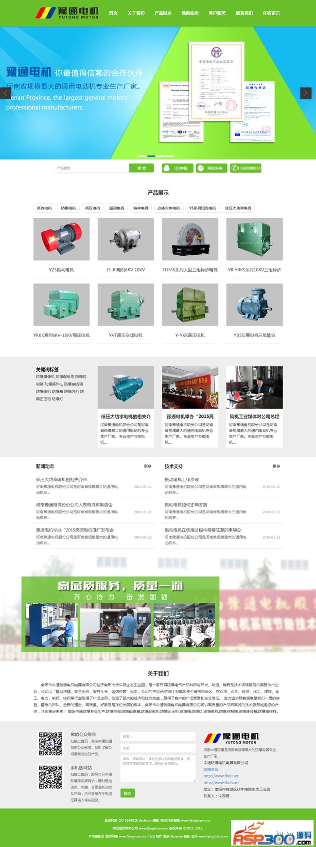 豫通电机织梦dedecms绿色企业模板源码说明