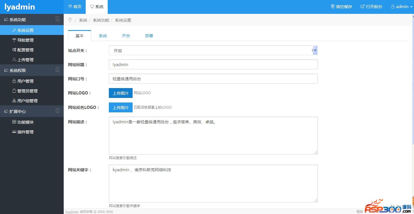lyadmin是一套轻量级通用后台,采用Bootstrap3制作,自带权限管理,模块化开发。支持多标签和经典模式两种后台一键切换,满足不同用户不同项目的实际需求,非常适合作为项目的基础后台。
