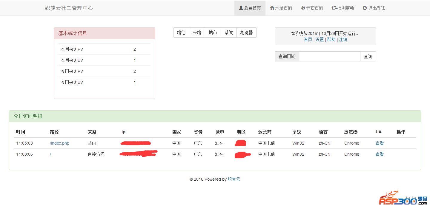 因为IP查询调用的是百度的接口,需要自己申请key 地址:http://dwz.cn/4tdxxS一个key可查询五千次 下载地址 下载地址已转移到新版网站,请点击左上角-首页,在新版网站搜索此套源码的标题进行下载。
