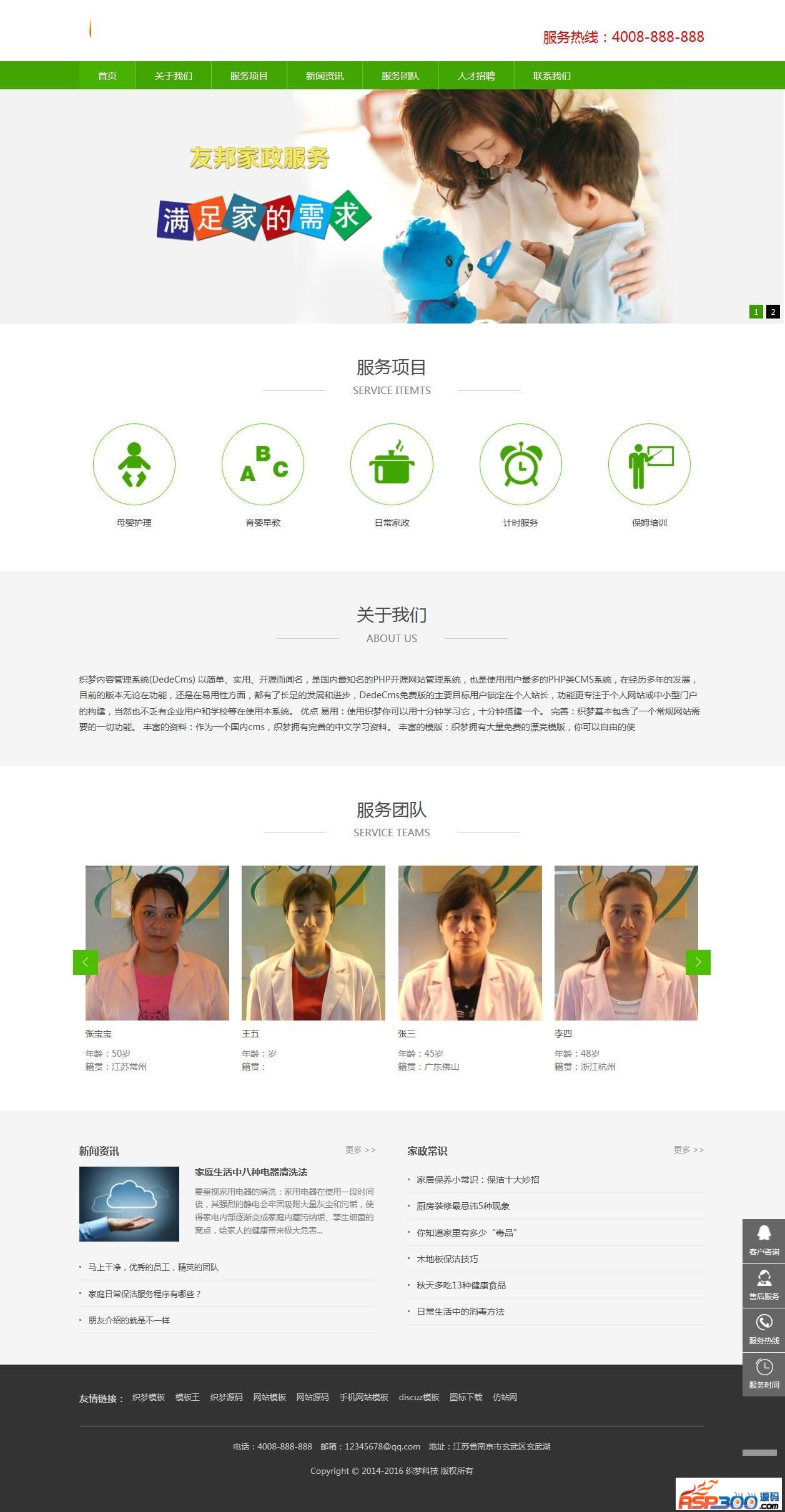 织梦绿色家政公司网站模板(支持手机版),测试完整无错,兼容主流浏览器。