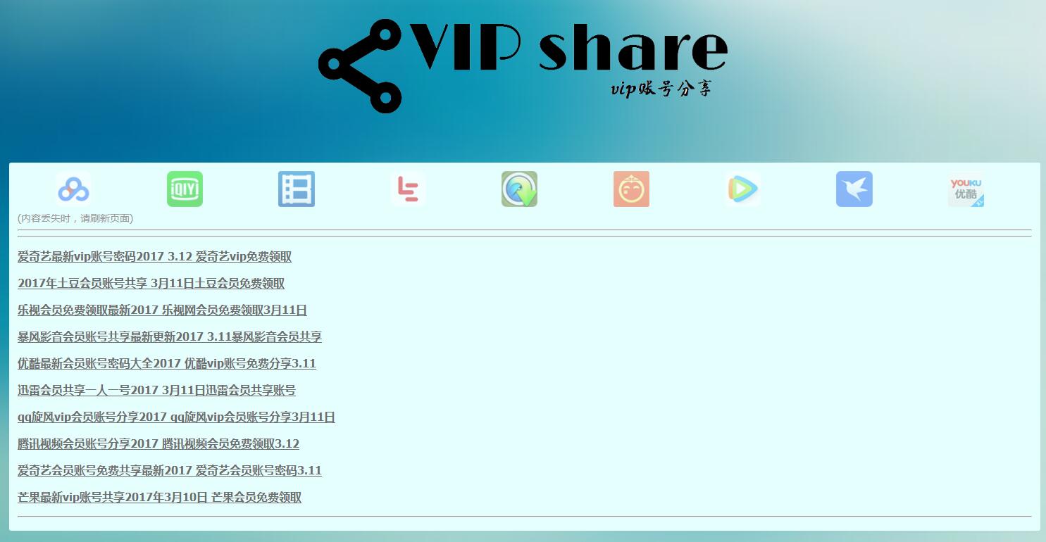 在线自动获取各种影视网站VIP帐号无加密版源码
