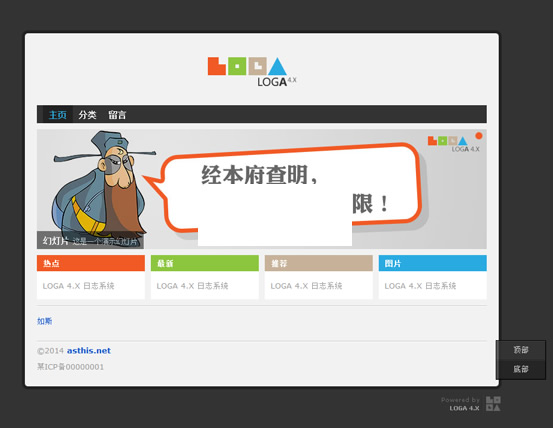 LOGA 4.X 日志系统即名为 "Log AsThis",是如斯开发的日志系统。取简洁,追求效率之意。本日志系统基于PHP+MySQL平台开发,结构简洁,运行速度极快。