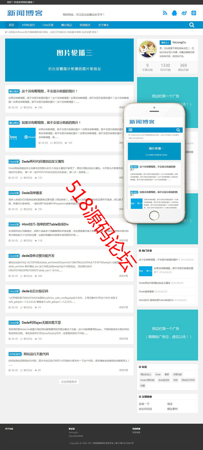 响应式新闻技术博客类织梦模板(自适应手机端)+利于SEO优化