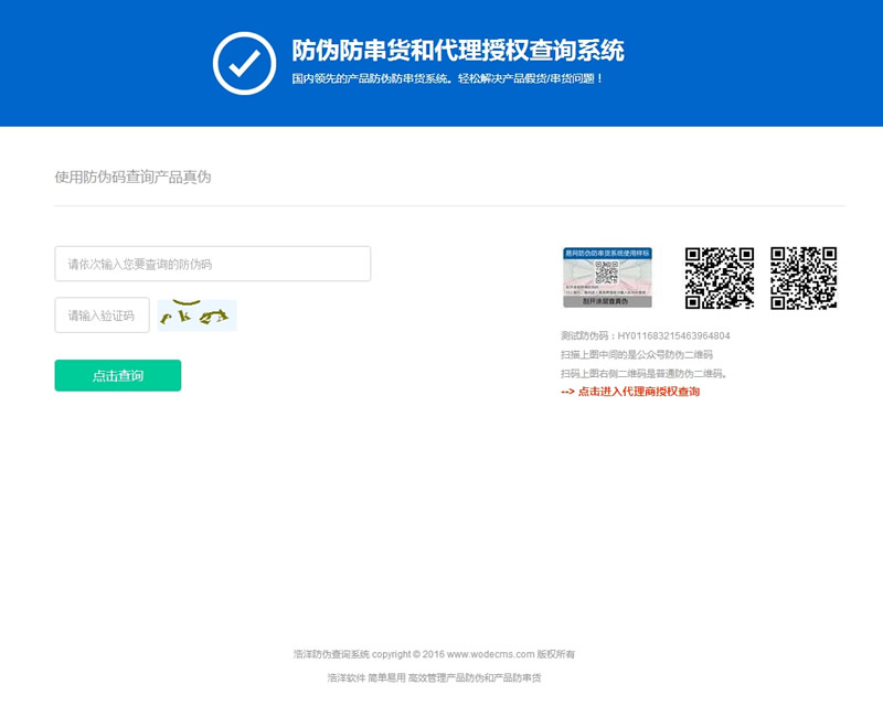 代理防伪授权查询系统WODECMS是以php+MySQL进行开发的防伪码查询系统。