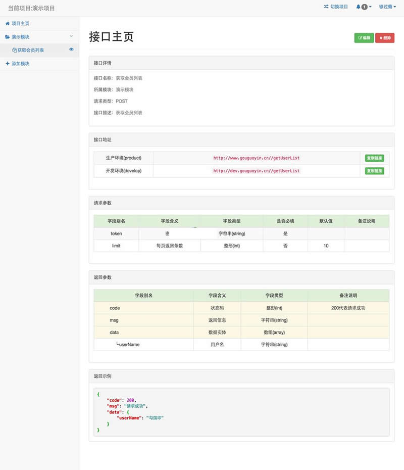 完善的权限控制系统,可以分别控制项目的编辑、删除、转让权限和模块接口的添加、编辑、删除权限