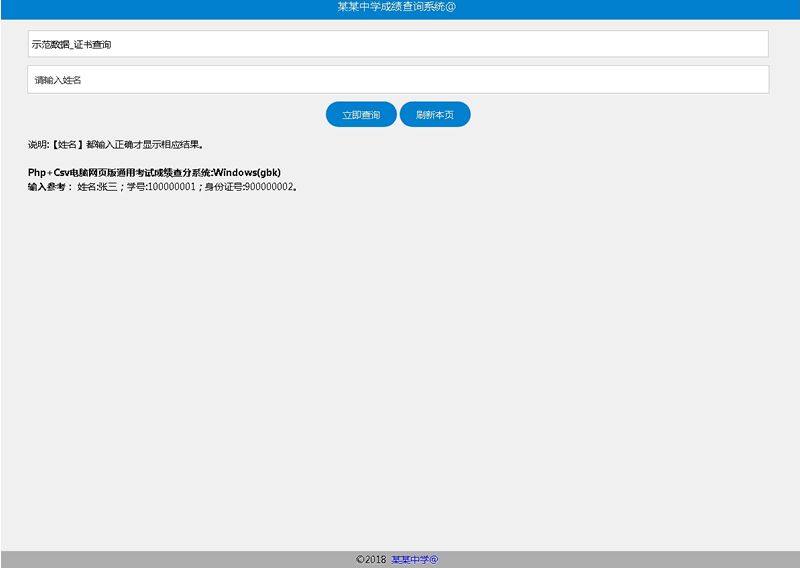 PHP+Csv(Excel)通用成绩查询系统【无需后台】继承原来(asp/php+txt/excel windows/Linux等五大系列超过12个不同版本)的通用易用优点,同样通用于几乎所有工资等查询,成绩查询,物业查询,收电费查询,录取查询,证书查询等场景哦。