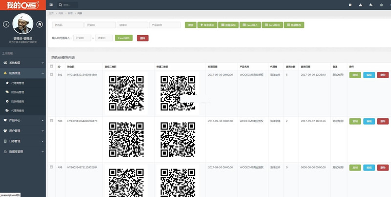 6、防伪码管理、防伪码查询记录;代理商管理、代理商查询记录;