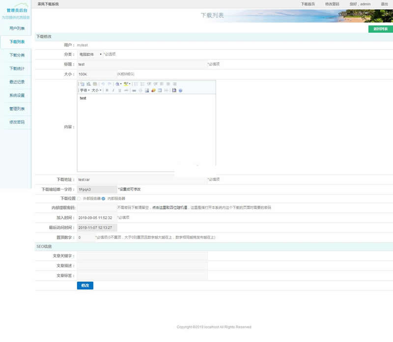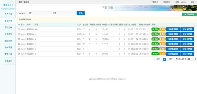 11.多用户平台,用户注册后可以发布自己的下载链接。