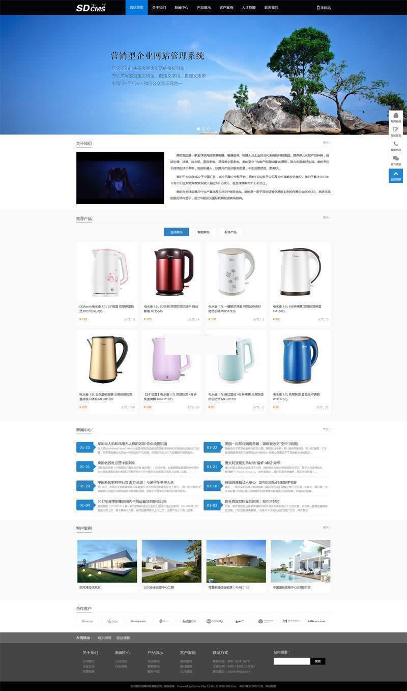 SDCMS四网合一企业网站管理系统是一个以PHP+MySQL/Sqlite进行开发的四网合一网站源码。