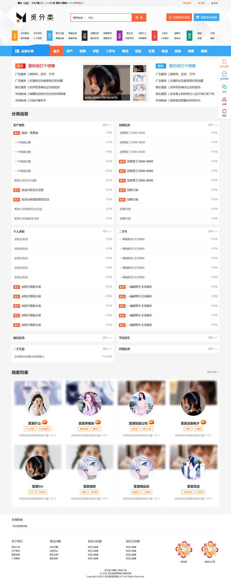 觅分类信息系统采用主流php+mysql开发而成,高效完整的系统交付方案,适合大中小站长建站的门户信息系统,结构干净清爽,无残余代码PC+WAP+APP三端同步数据。