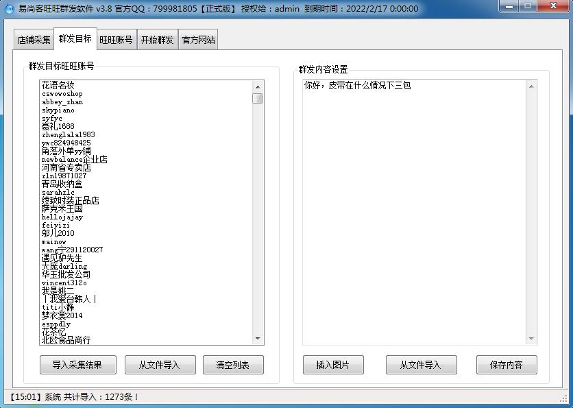 易尚客旺旺群发软件目前已经全面支持淘宝、天猫采集群发一体化,基于阿里买家版客户端群发更加稳定。群发成功率100,每次群发成功,将自动关闭聊天窗口,不占用桌面资源,让你群发高枕无忧!