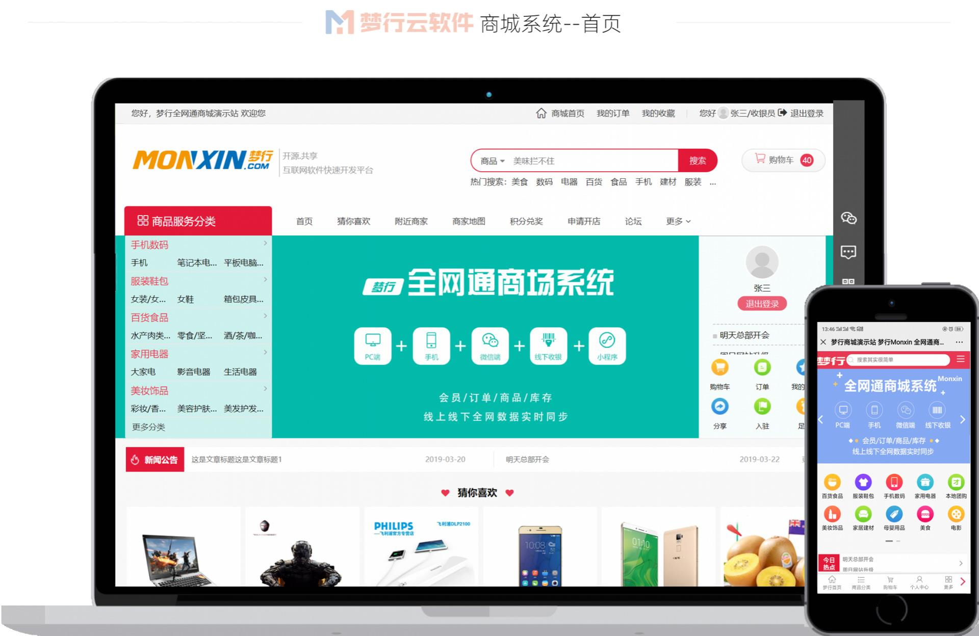 Monxin梦行多商户商城系统源码是一个以php+MySQL进行开发的大型多商户商城系统源码,带线下收银功能、带分销,PC+h5+公众号端。常用于:电商平台、厂家直营商城、线下超市、便利店收银等。