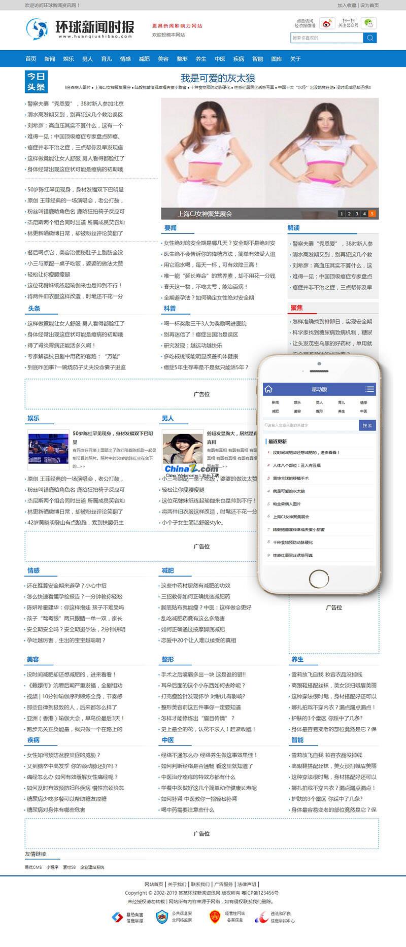 仿环球新闻时报资讯类网站织梦模板(带手机端)是一个基于织梦系统进行开发的新闻时报资讯类网站源码,系统包含了PC+移动端+利于SEO优化等功能。