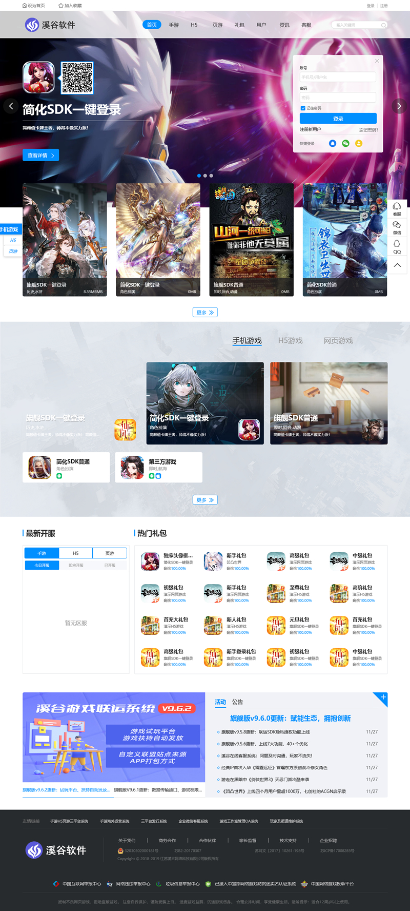 溪谷科技游戏联运系统加盟版(客户可自行下载程序就能永久免费安装使用)。这套游戏联运系统加盟版包括:PC端、wap端、管理后台、推广系统组成(玩家和渠道数据需要对接接口,溪谷SDK直接对接,其他提供免费接口文档),旨在为想要运营游戏的客户提供一个无成本、零门槛、无需操心技术的的游戏创业系统。