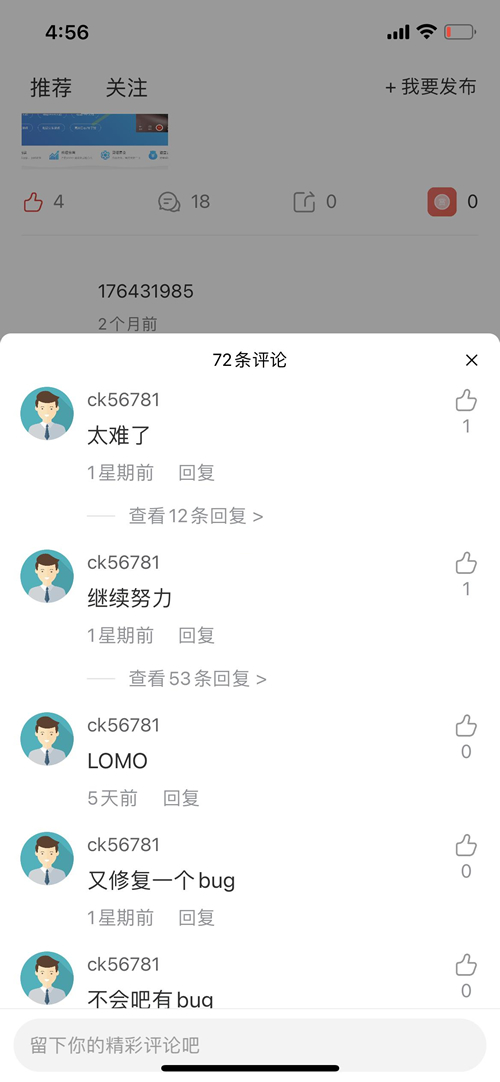 7,社区动态页面,评论功能完善,可对社区动态发送评论回复。