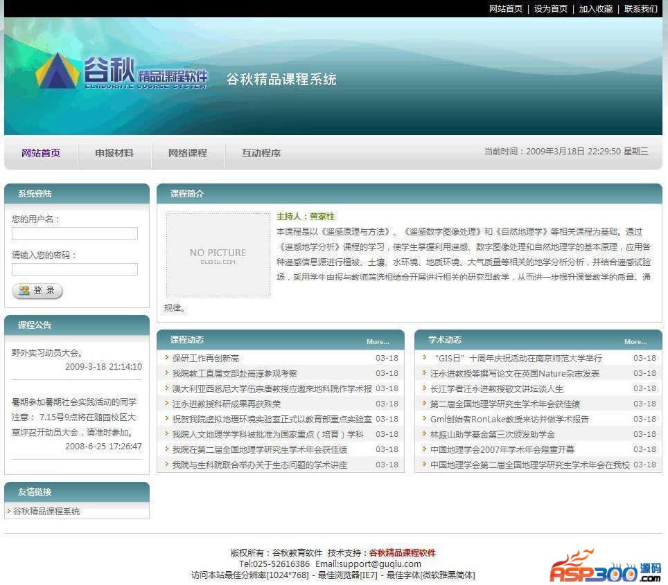 为加快国家精品课程建设步伐,争取有更多的优质课程加入省级精品课程和国家级精品课程的行列,充分发挥精品课程建设对提高整体教学水平的促进和辐射作用,整合学校教师的教学资源。现推出《谷秋精品课程软件》系统,软件严格按照国家教育部关于精品课程建设的格式要求开发。界面简洁大方,操作容易,只需具备一些Word操作即可轻松使用。本软件为网络版,教师制作课程无需下载任何客户端软件。