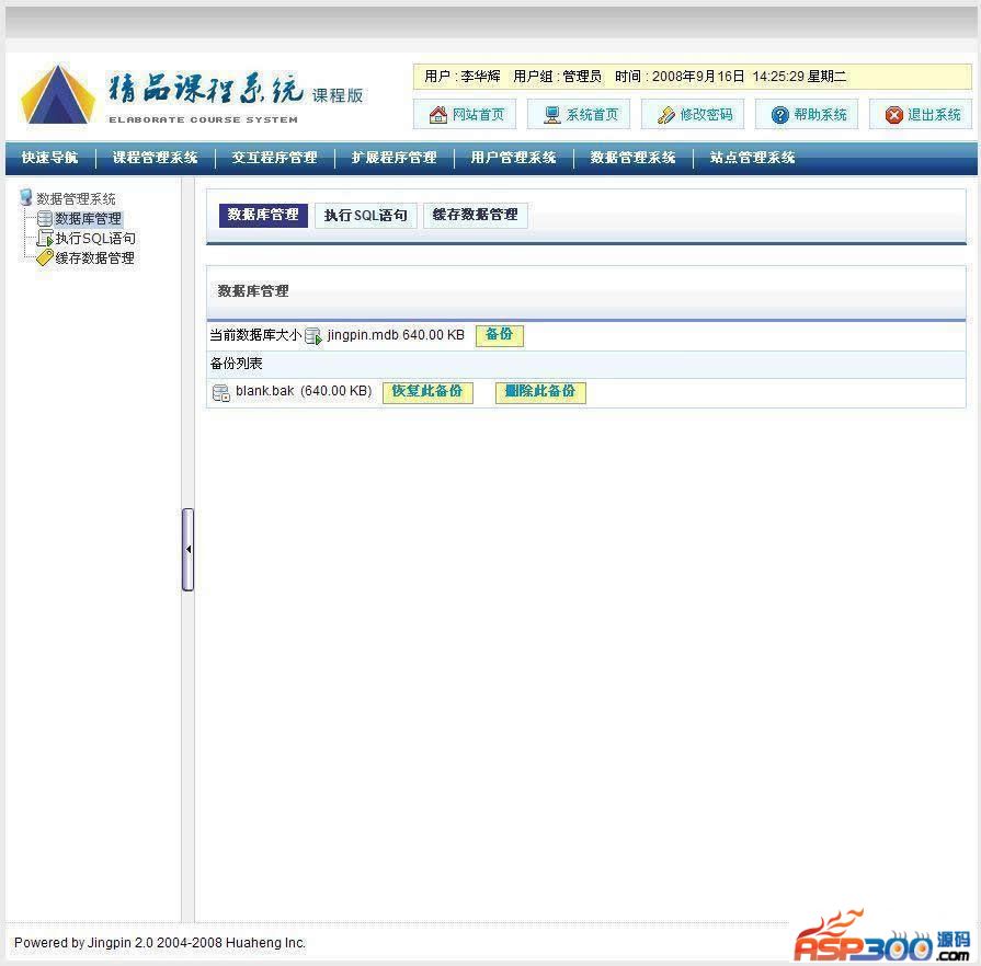 谷秋精品课程软件课程版是专门为教师打造的一个精品课程系统,老师可以在线制作精品课程,在线管理精品课程。课程版包含有课程管理系统,互动程序管理(包含有在线留言系统,在线论坛系统,在线答疑系统,在线作业批改系统和在线水平自测系统),扩展程序管理(包含有新闻管理系统,图库管理系统,词汇管理系统,公告管理系统和友情链接管理系统),用户管理(包含有用户管理和用户组管理),数据管理系统(包含有数据库管理,执行sql语句和缓存数据管理),站点管理系统(包含有站点配置,文件配置,模板配置,上传配置和日志管理)。功能十分强大,共计21个管理系统,能满足精品课程的申报和网络教学的工作。