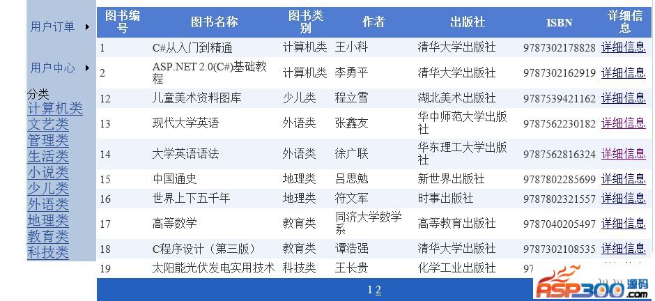 用户管理 用户信息修改 书籍浏览模块:让访问者方便地查看当前系统中所提供的各类书籍。 书籍搜索模块:让访问者能够快速搜索到自己想要的书籍。 书籍评论模块:提供书籍评论留言板功能,让用户能够对书籍发表评论。 购物车模块:用于存放和显示用户所购买的图书,并通过提交生成订单。 更多学习资料请联系 QQ:1457026304 下载地址 下载地址已转移到新版网站,请点击左上角-首页,在新版网站搜索此套源码的标题进行下载。