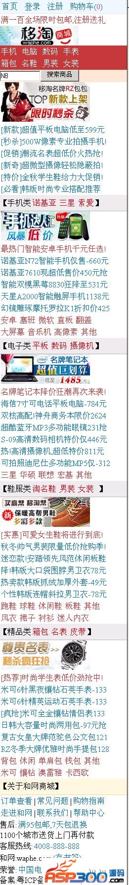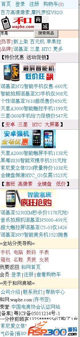 和网商城,手机平台(WAP2.0界面)v1.0测试版(带全站测试数据+图片)。