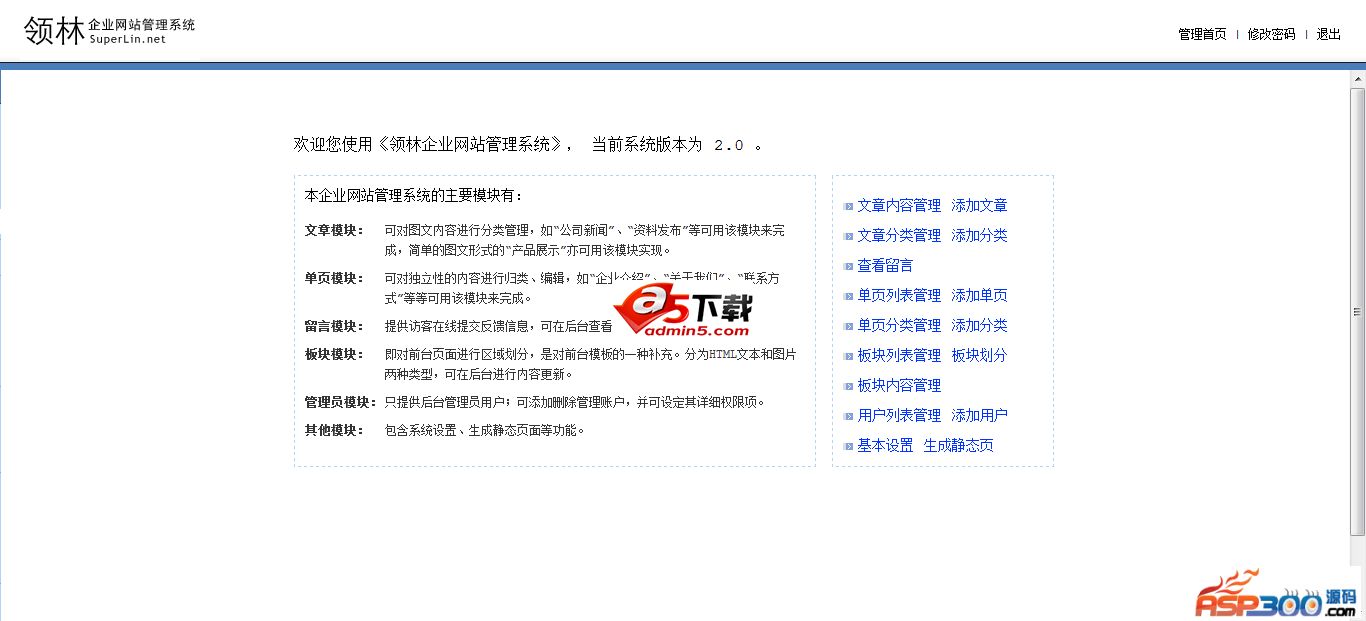 《领林企业网站管理系统》是针对小型企业网站建站而开放的一套PHP网站系统。该系统适用于只需简单文章(图文)功能模块和单页功能模块,偏重与简洁的文章内容管理的网站。