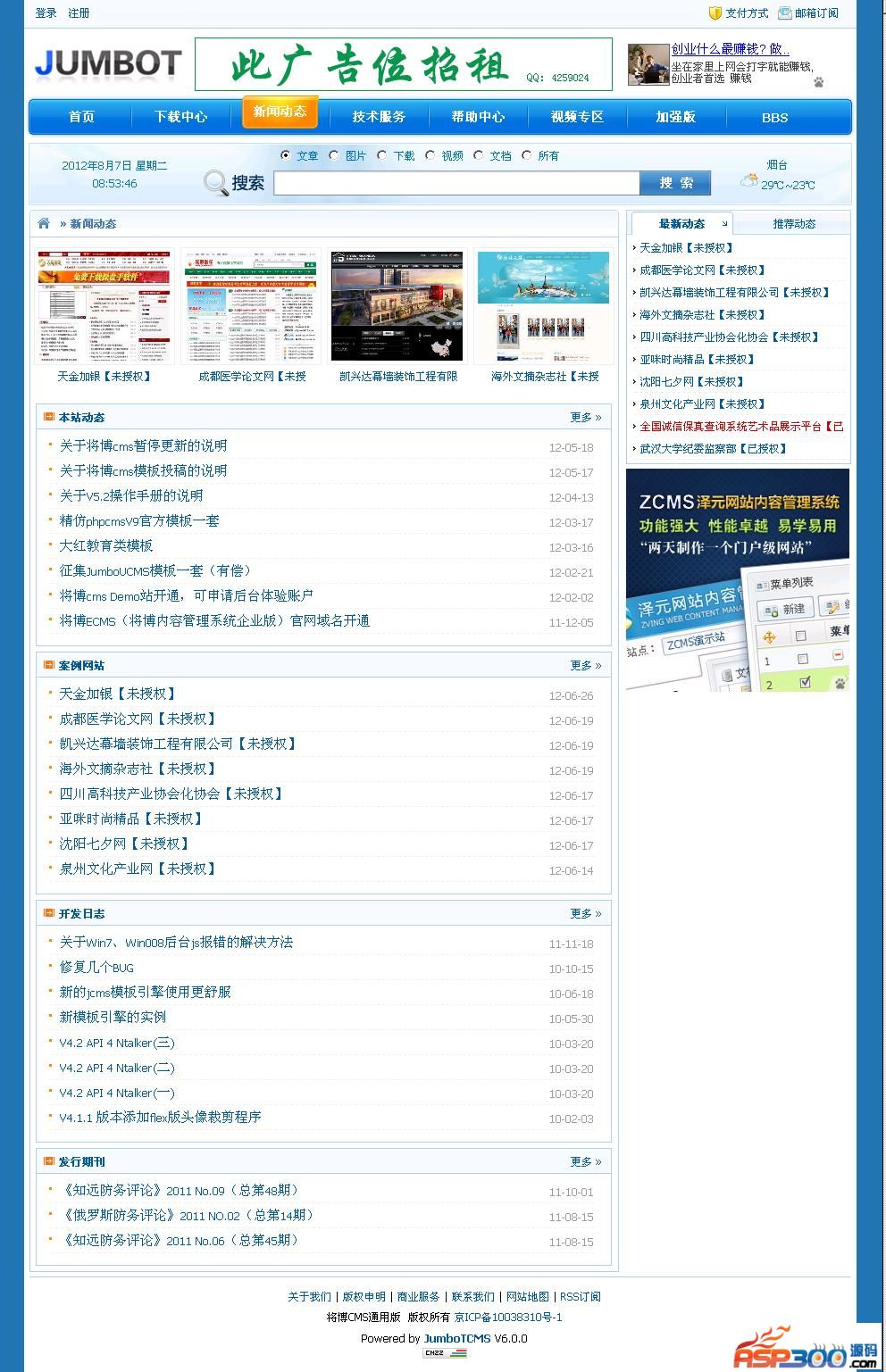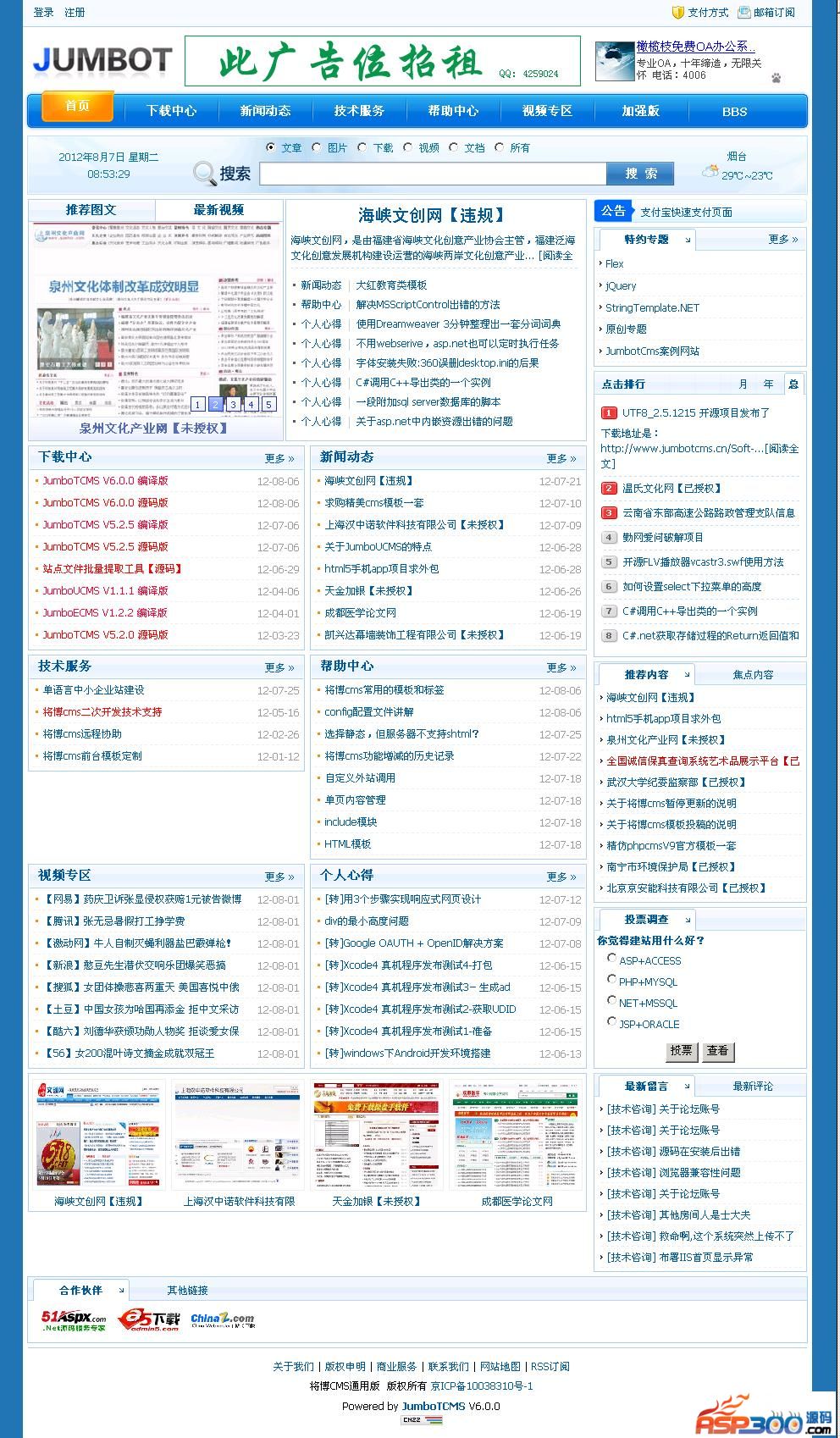 JumbotCms(将博CMS)是一套同时面向最终用户和开发者的免费的网站内容管理系统,系.net2.0开发,支持Access/SqlServer数据库。