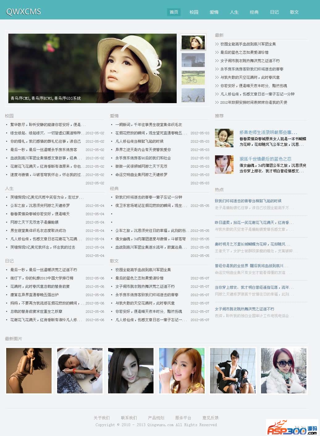 QwxCMS青乌序内容管理系统,是国内CMS市场的新秀、也是国内少有的采用微软的ASP.NET 2.0 + SQL2000/2005 技术框架开发的CMS,充分利用ASP.NET架构的优势,突破传统ASP类CMS的局限性,采用更稳定执行速度更高效的面向对象语言C#设计,全新的模板引擎机制, 全新的静态生成方案,这些功能和技术上的革新塑造了一个基础结构稳定功能创新和执行高效的CMS。