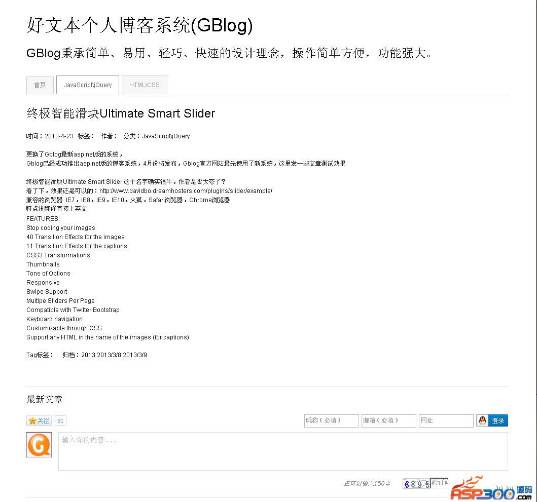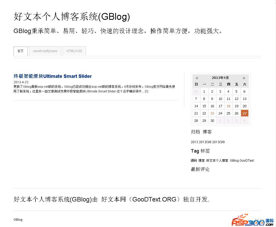 GBlog的ASP.NET版本命名为“好文本个人博客系统(英文简称:GBlog)”。