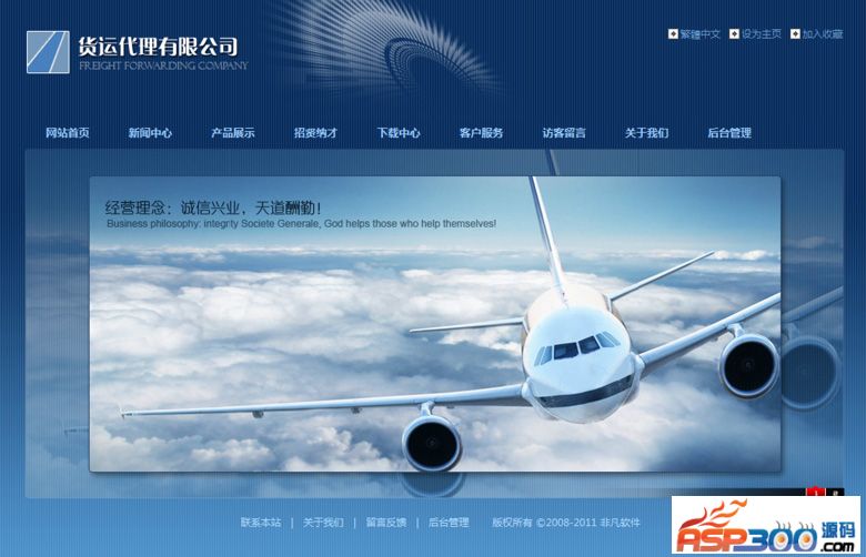很漂亮的快递公司、物流公司、货运公司企业网站源码。飞机在蔚蓝的天空翱翔,漂浮的云朵映衬,配以公司的理念,图片色彩使人视线开阔,设计新颖。全站主次分明,简洁明了。“安全,准时,诚信,便捷”更是公司对每一位客户的服务保证。