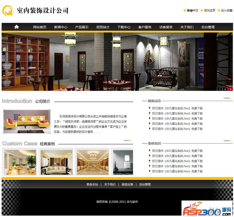 漂亮的装饰,设计公司网站模板。全站主次分明,分类精细,经典案例的陈设能使人更充分的了解公司设计团队的能力。深色的室内设计沉稳,配以内部的陈列摆放风格也不失活泼,独特的茶楼摆放,和折扇的嵌入,使人有高贵典雅,古香古韵的感官。