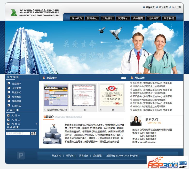 适用于:医疗器械、医院、诊所、社区服务等网站
