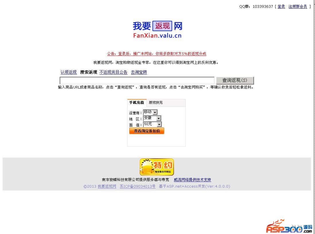 淘宝客返现程序(淘客返利)整合支付宝用户登录,注册会员可以推广本网站。用户登录后自动返现。
