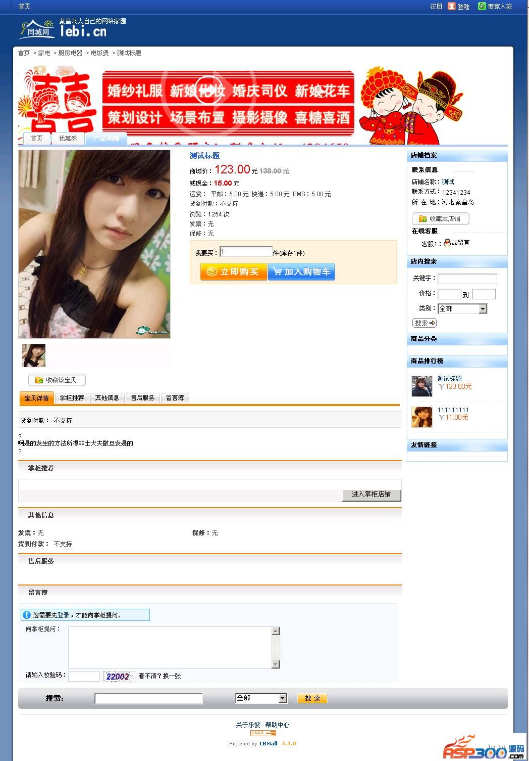 乐彼多用户商城系统,采用ASP.NET分层技术和AJAX技术,运营于高速稳定的微软.NET+MSSQL 2005平台;完全具备搭建超大型网络购物多用户网上商城的整体技术框架和应用层次LBMall