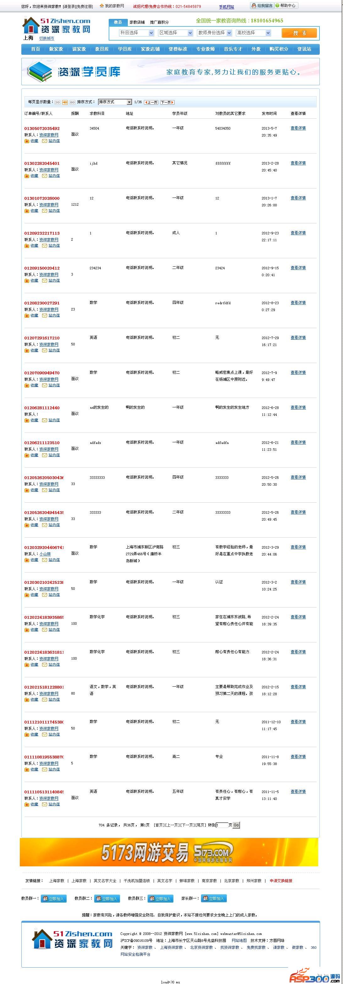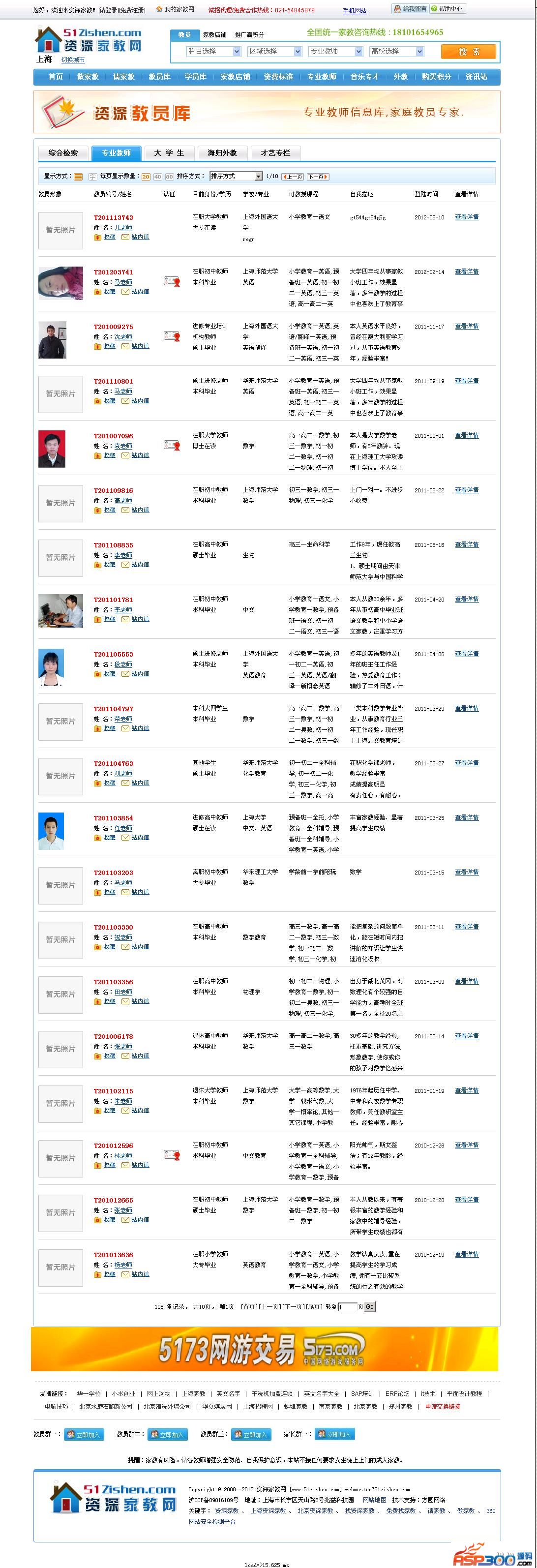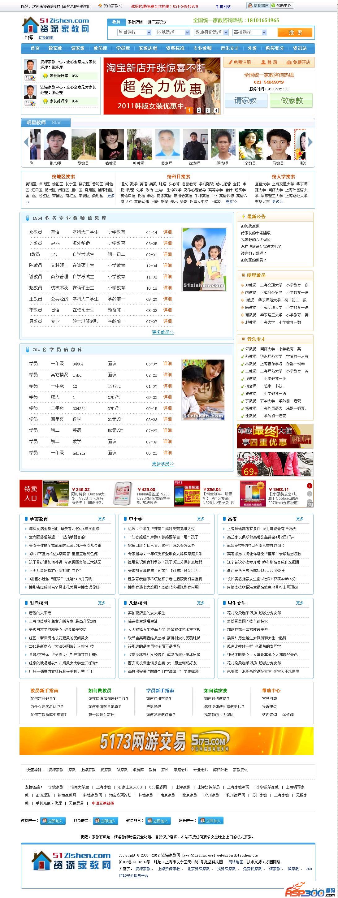 站点演示:http://www.51zishen.com/ 资深家教网