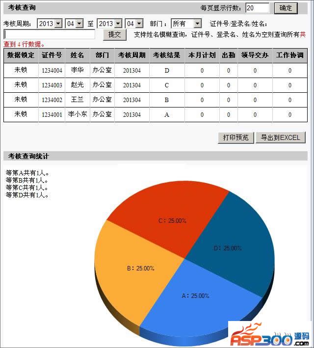 (2)管理人员可以查询所设定部门员工的考核明细,可以上报本部门考核数据。
