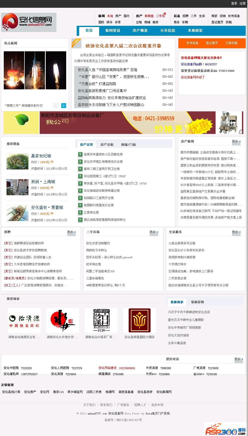 Data地方门户系统是一套免费的地方门户网站搭建系统,包含二手房、出租、楼盘、招聘、二手、生活信息、新闻资讯、黄页、促销、便民电话等地方类网站运营中常用的功能,支持多套皮肤随时切换,无需太专业的知识,修改标签就能完成绝大部分的页面修改,实现每个网站自己的特色。Data地方门户系统 v2.4 更新日志:1、增加团购功能(商业版)2、增加天气预报组件。3、增加客服电话、QQ面板组件。4、优化缓存模式,可自定义开启,关闭状态。5、修复手机版发贴出错bug。6、调整多处SEO细节。7、蓝色V2模板主页调整。8、修复其它多处细微bug。9、调整其它多处细节。