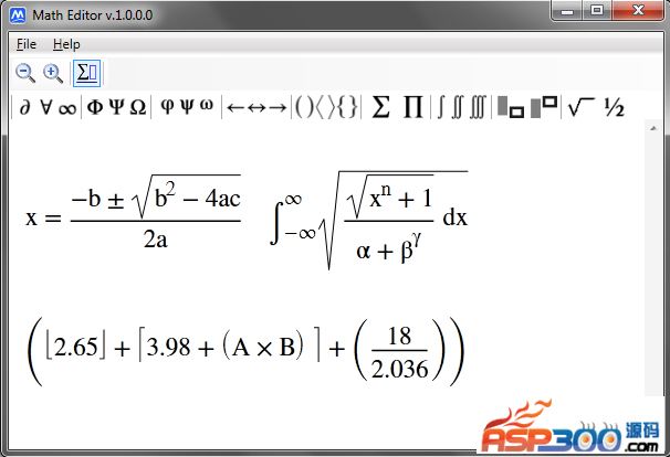 公式编辑器(Equation Editor),可以帮助我们排版的数学内容。使用了C#开发,WPF作为我们的GUI框架。可以更具模版直接在公式符号的相应位置填写数字即可,支持导出为图片等多种格式 下载地址 下载地址已转移到新版网站,请点击左上角-首页,在新版网站搜索此套源码的标题进行下载。