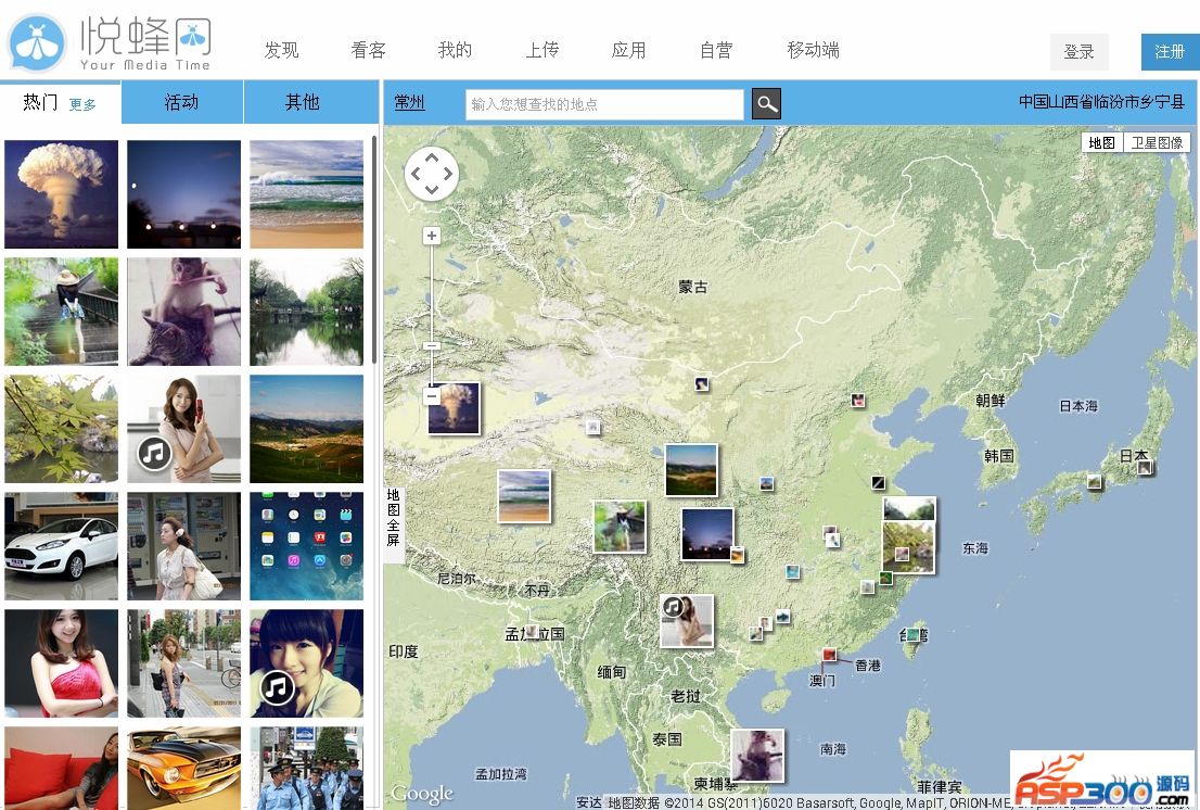 悦蜂网源码包是一款对外开放且全免费的建站系统,可以很容易搭建一款基于谷歌地图的定位分享图片、音频等多媒体信息的社交网站。网站整体布局清新合理,从注册登录到定位分享再到搜索具体信息功能完善且操作简单。在这里,我们让已经定位公开的图片、音频动起来,到地图上自己该去的地方。在这里,没有距离,动一动鼠标你可以到地球上任意一个角落,点一点搜索,你会找到你想要的。