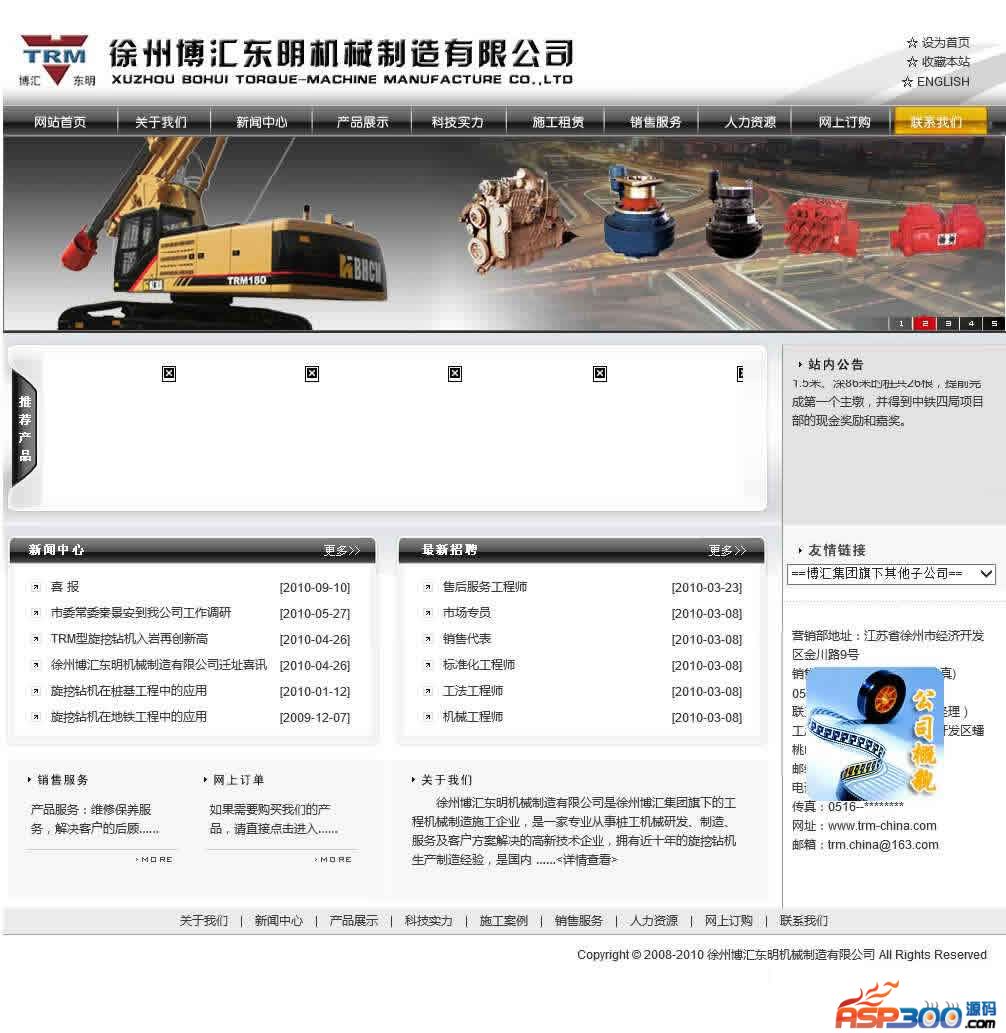 网站首页、关于我们、新闻中心、产品展示、科技实力、施工租赁、销售服务、人力资源、网站订购、联系我们