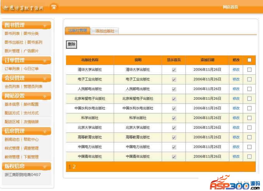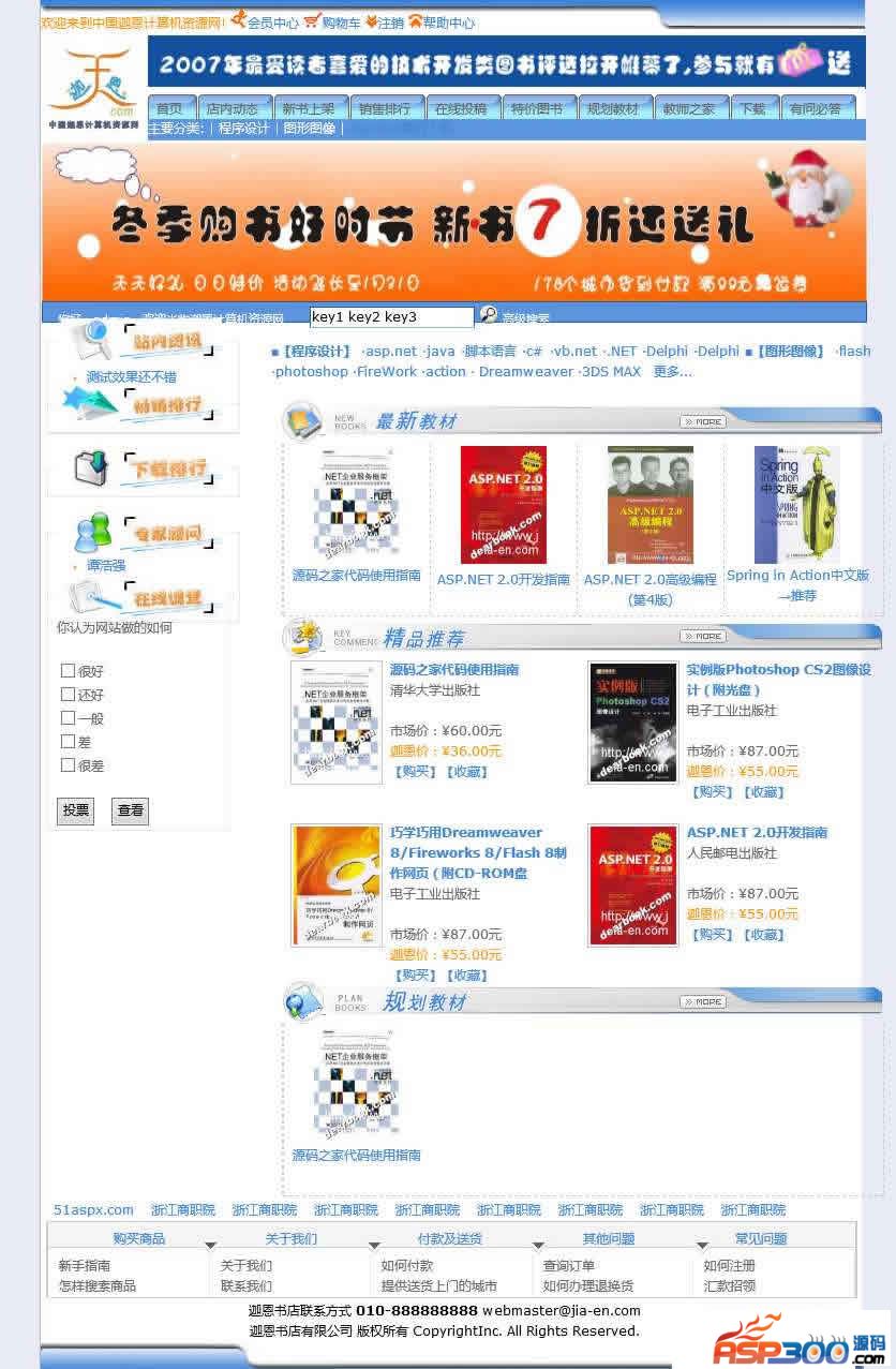 图书商城电子商务网站源码采用三层架构开发,购物车功能,主要参考了petshop的设计架构、使用了Asp.net2.0中很多MemberShip、master等新功能。主要功能:前台集成了产品在线展示,用户注册、在线调查、在线投稿 后台有类别管理\图书管理\订单管理\会员管理\配送范围管理\邮件列表\广告管理\友情链接管理等 后台添加图书时自动生成缩略图和文字水印 注意事项:1、管理员是admin 用户名密码是:admin888 后台管理地址/web/admin/ 2、开发环境为Visual Studio 2008,数据库为SQL Server 2008,数据库文件在DB文件夹中
