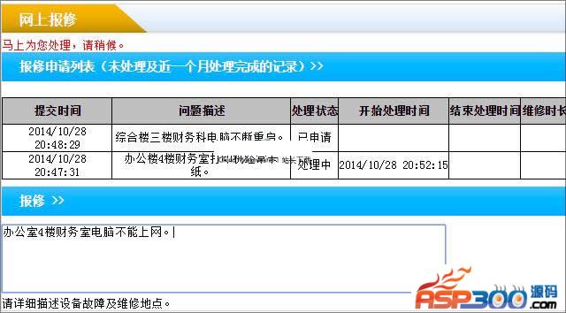 1、员工提交报修申请,维修人员按顺序处理,工作有条理。