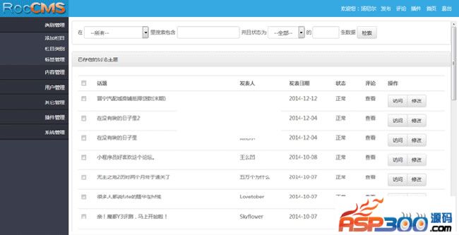 RocCMS的前身是社区系统RocbySay,延伸功能后我们发现可以建立各种展示型站点,特更名为RocCMS,致力打造成为一个以社区化交流为主的内容管理系统。RocCMS乐克内容管理系统 3.2 SP1 更新的内容: 1.后台权限控制2.支付宝充值接口,充值金币3.删除后台配置移动设备访问的设置4.安装时有一个Alert没有进行格式处理导致不显示5.上传文件增加最小限制设置6.上传系统LOGO限制改为128b-2M之间7.后台增加订单处理功能8.检测功能控制层制作9.插件安装完毕后会重载应用程序以便删除安装失败的插件10.解决删除用户时出现关联错误无法删除的问题11.QQ第三方登录接口制作12.分类表增加针对移动端的列表与显示主题模板设置项13.主题包增加配置节点,获取主题配置增加兼容默认值