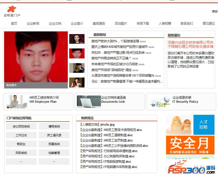 启明星门户网站Portal系统可以快速建立企业内部的门户网站,系统提供了功能强大的模块支持(包括新闻、文档、通知、图片、投票、留言,招聘等模块),扩展方便。