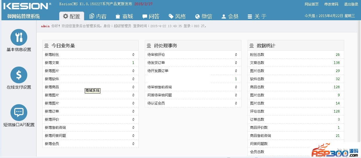 5年4月22日)KESION官方正式宣布,KESION微网站管理系统V1.0正式版发布了!