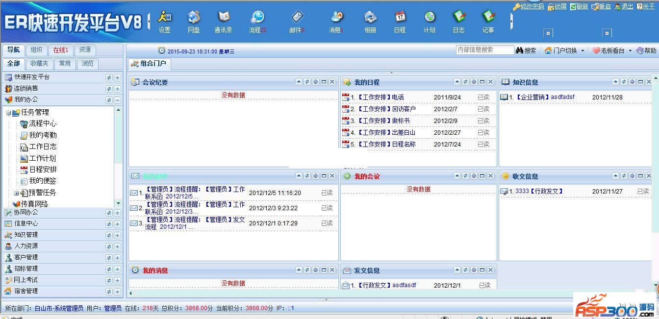本程序中已经用平台开发了OA、HR、PM、资产管理、CRM等系统,可以直接使用,并且有多家集团企业及政府机关在使用。