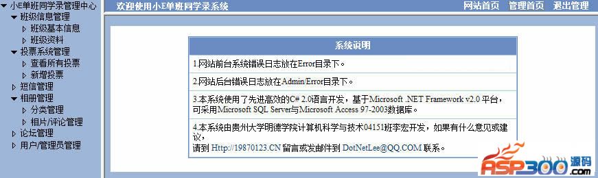 由贵州大学明德学院计算机科学与技术04151班李宏开发,使用了先进高效的C# 2.0语言,基于Microsoft .NET Framework 2.0 平台,可采用Microsoft SQL Server与Microsoft Access 97-2003数据库。