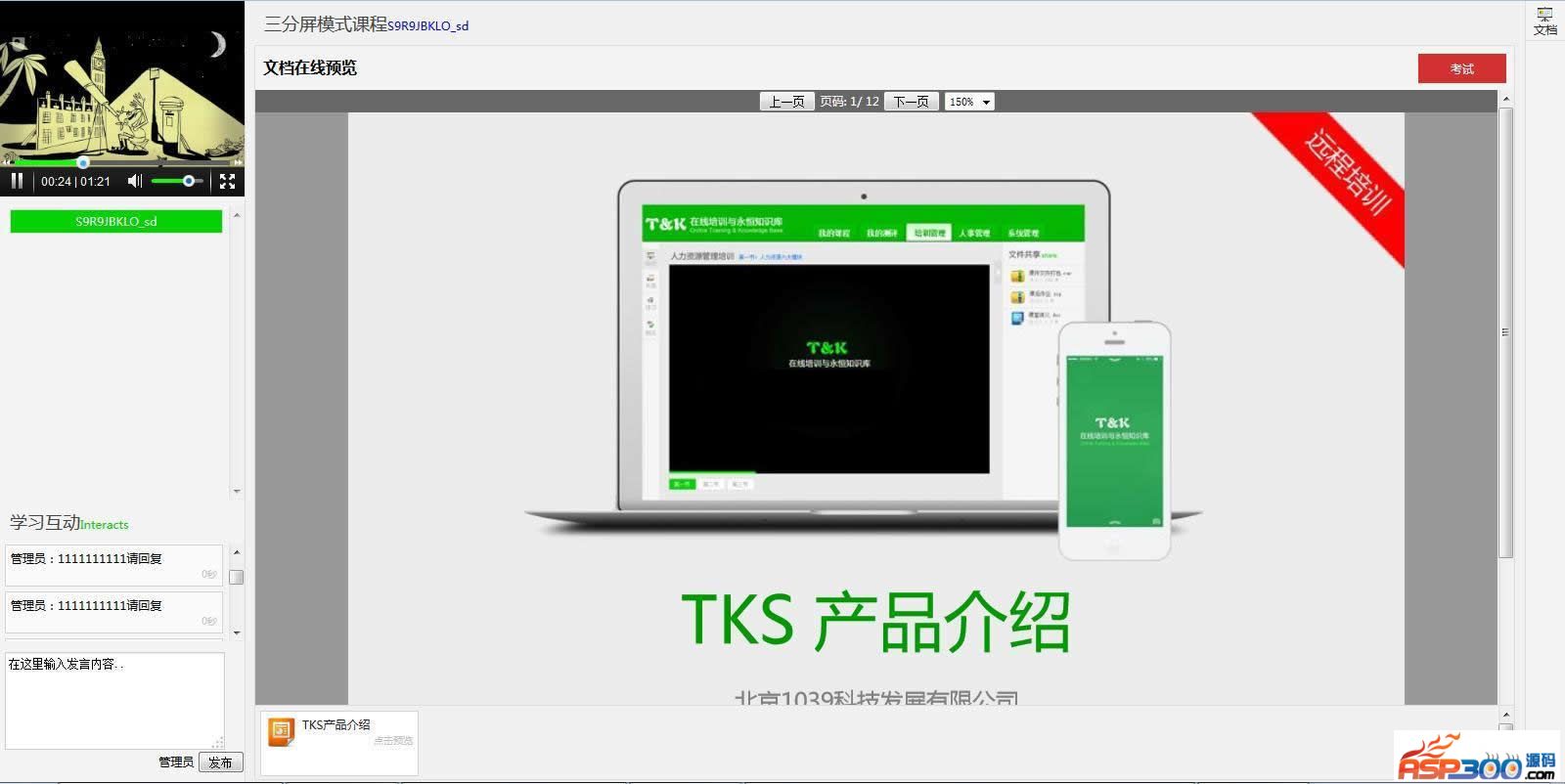 在线学习系统是一个以.net进行开发的网络学习平台系统。本系统为TKS在线学习系统的独立学习系统。支持网络流行视频格式,多种学习模式。常规大屏模式,三分屏模式,文档模式,自定义模式。独有的防挂机功能,智能人脸识别。实时记录培训进度。学员问答,讲师后台回复。独立学员操作前台,移动端,pc端,pad 完美运行。完善的后台操作。权限分配,数据统计,数据监控,数据图形展示,综合分析,学员学习状态都在掌握之中。上万培训机构,企业的首选系统,上百万学员在用的培训考试系统。100可用,免费技术支持!
