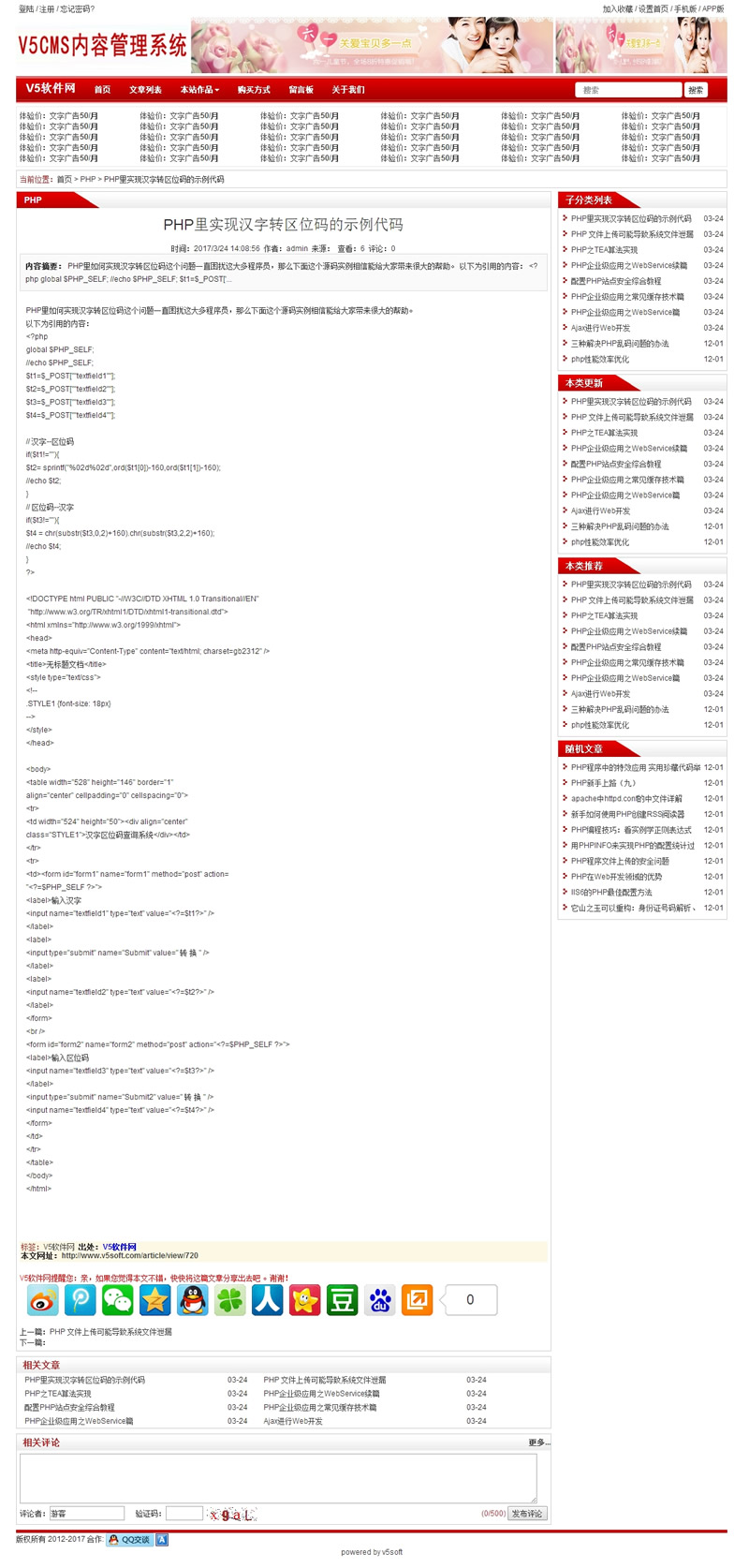 2. 支持手机模板 默认自带一套手机模板 (http://demo.v5soft.com/m) 首页访问. 模板目录[templates/mobile]